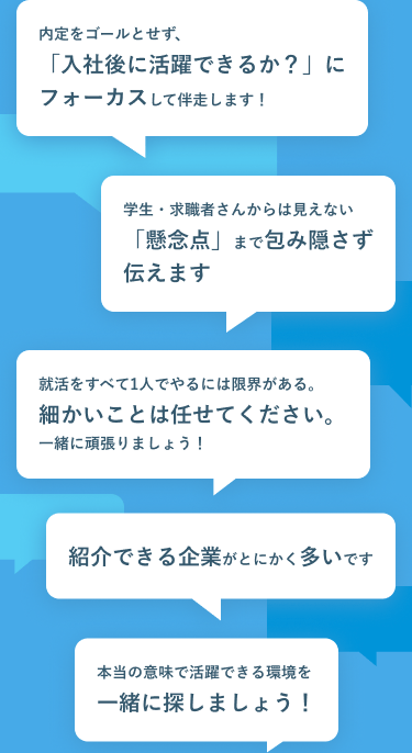 私たちの使命は、就活の伴走者として一人ひとりの学生・求職者に向き合うこと。