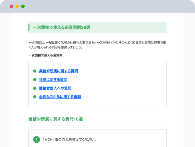 OK例・NG例や回答のコツを確認し、面接フェーズに合わせて逆質問を考えてみましょう。